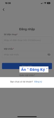 ► BƯỚC 2: Tạo tài khoản trên ứng dụng “Tuyển sinh LTV” bằng cách nhấn vào mục tài khoản (góc dưới bên phải màn hình); Chọn “Đăng nhập” rồi điền thông tin số điện thoại, mật khẩu nếu đã có tài khoản hoặc chọn “Đăng ký” nếu chưa có tài khoản; Tại mục đăng ký: