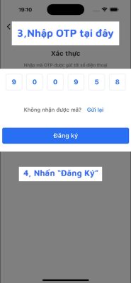 • Mã OTP sẽ được gửi qua tin nhắn tự động vào số điện thoại vừa đăng ký, cha mẹ học sinh nhập mã OTP rồi ấn đăng ký để hoàn thành bước tạo tài khoản.
