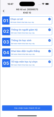 • Hồ sơ “Trạng thái hoàn thành” khi đã khai báo đầy đủ các thông tin học sinh