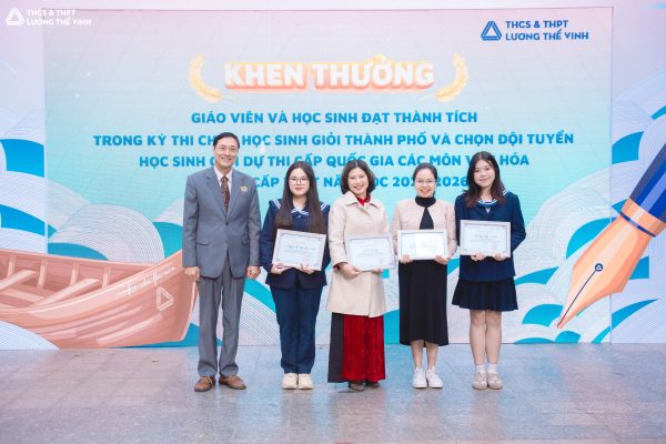 Song song với đó, nhà trường cũng dành những khoảnh khắc trân trọng để chúc mừng các thầy cô và học sinh đạt thành tích xuất sắc trong kỳ thi Học sinh giỏi Thành phố và đội tuyển Quốc gia năm học 2025-2026. Đây là trái ngọt của nỗ lực, đam mê và tinh thần không ngừng vươn lên của cả thầy và trò.