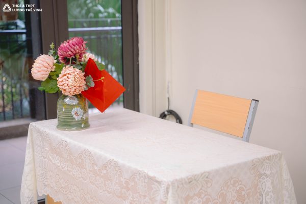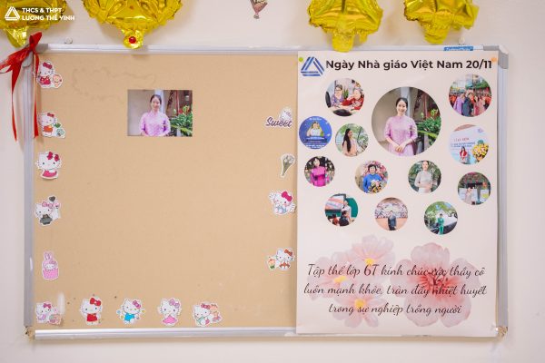 Ngay từ những ngày đầu tháng 11, từng lớp học tại Trường THCS & THPT Lương Thế Vinh – cơ sở Tân Triều như được thổi một làn gió mới, trở nên sống động và ấm áp hơn bao giờ hết. Khăn trải bàn trắng tinh tế, những lọ hoa tươi tắn đặt trang trọng trên bàn giáo viên, cùng những mảng bích họa, sticker do chính học sinh tự tay sáng tạo, đã biến mỗi lớp học thành một không gian tràn đầy lòng biết ơn và yêu thương.
